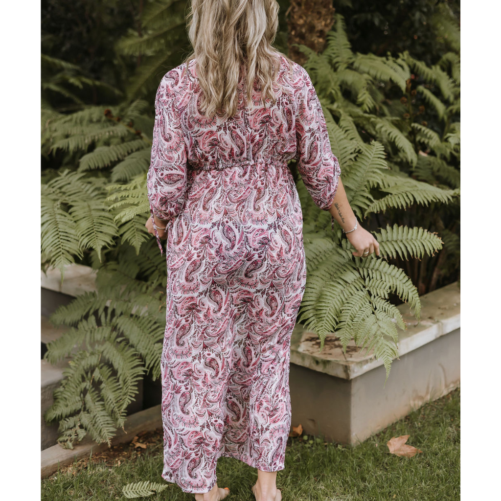 Long Kimono - Pink Paisley